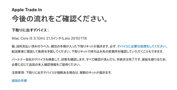 あと、まだ下取りプログラムが適応するマシンだったので、これも申込んどいた。消費税分ぐらいにはなる予定ですが、上記の通り「このマシンHDD壊れてんじゃん!」とか言われたら下取り価格下がりますね!(泣)どこが壊れてるのか知らんけど。
