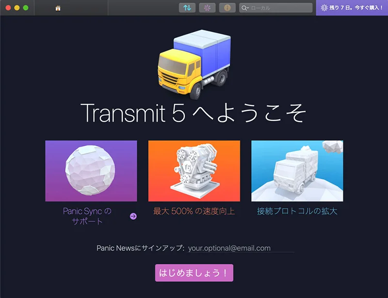 公式サイト以外にApp StoreにもTransmitは有るんですけど、どこぞのブログによるとAPP Storeの方はiCloudにアクセス出来るように設定されているらしく、「あ、こっちのが便利じゃね?安いし」と思って軽率に2種類ダウンロードしちゃったんだけど、よく見たらAPP Storeの方は年間契約の値段だっていうね・・
