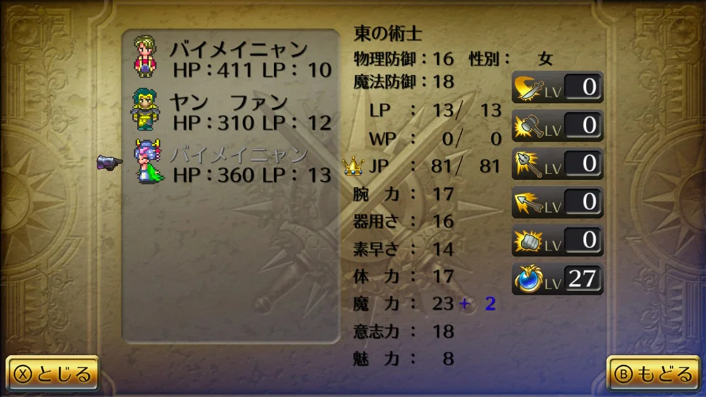 ミューズ様の夢の中のバク道場であげたレベルが勿体なかったので、データ引き継ぎでやり直しました。王冠と体術レベルはそのまま引き継いだようでレベルは21でした。