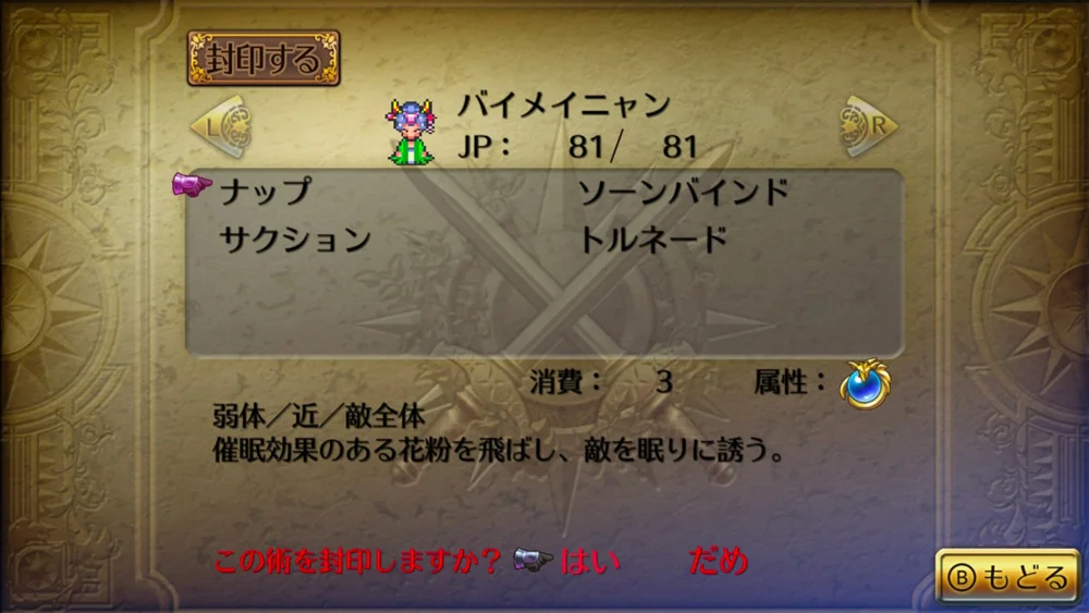 え、まさかバイメイニャンって消せない固有術の持ち主で、つまり技王冠を絶対に取れないってこと???ちょ、、、一人旅でそれは痛いんですけど、、、