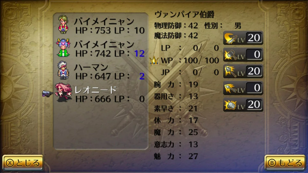 地下のレオ様の寝室に行くまでに4箇所ぐらい客室みたいなベッドルームがあるんだけど、何箇所かは薔薇に囲まれて女妖精系の敵シンボルがうろうろしてて、彼女らはレオニード伯爵の血の生贄になった村の女の子たちだろうってのを何処かで読んでなるほどなぁと思いました。ロマサガ2のワグナスも妖精シンボルを吸収し続けて女体化してたよね。