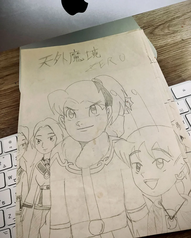 ご覧の通り小学生の頃に描いたものです。中身は四コマ漫画です。表紙のテンジンが大いに見切れています。当時の私はミズキ派だったのでショウガナイ。