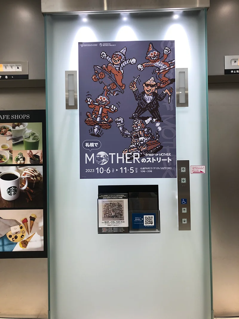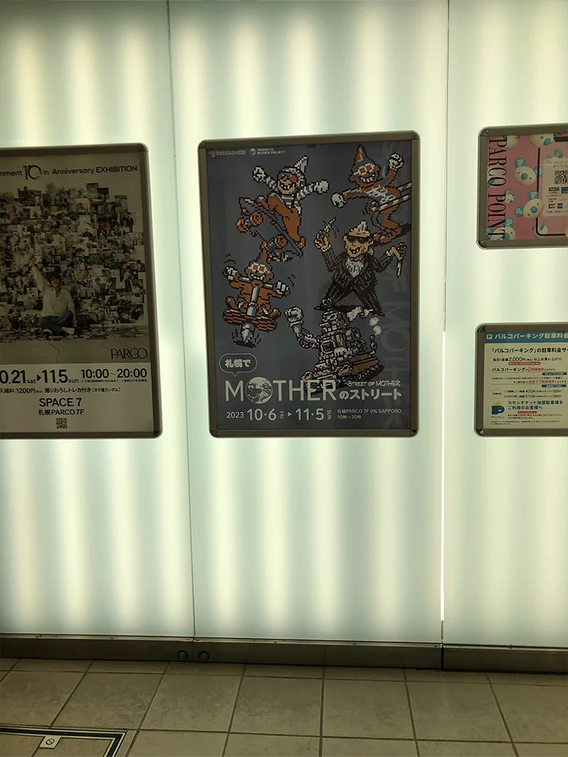 ちなみにこの写真を撮影してる時に、背後にアニメのお店があって等身大のルフィのパネルをキャーキャー撮ってる観光客の背後でMOTHER展の写真撮りまくってるのなんともいえなかった。